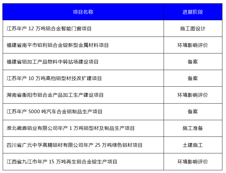 6月最新全國擬建在有色金屬加工項(xiàng)目