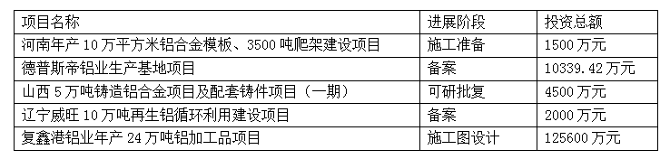8月份全國擬建在建部分鋁產(chǎn)業(yè)項目