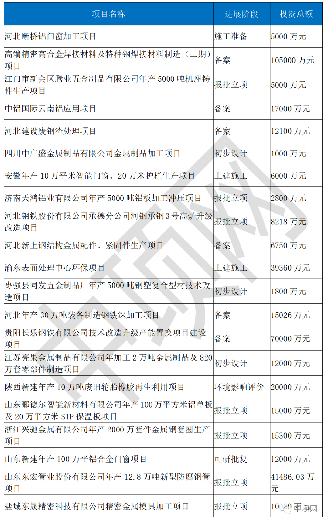 12月全國(guó)擬建在建有色金屬加工、鋼鐵加工項(xiàng)目