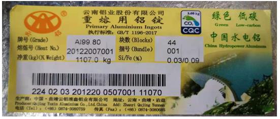三、云南鋁業(yè)股份有限公司生產(chǎn)的20KG“云鋁”牌重熔用鋁錠(AL99.70)注冊信息不變。