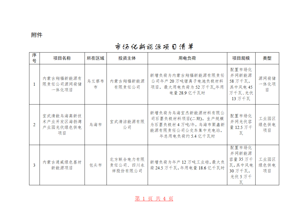 內(nèi)蒙古自治區(qū)能源局關(guān)于實施內(nèi)蒙古翔福新能源有限責(zé)任公司源網(wǎng)荷儲一體化項目等10個市場化新能源項目的通知