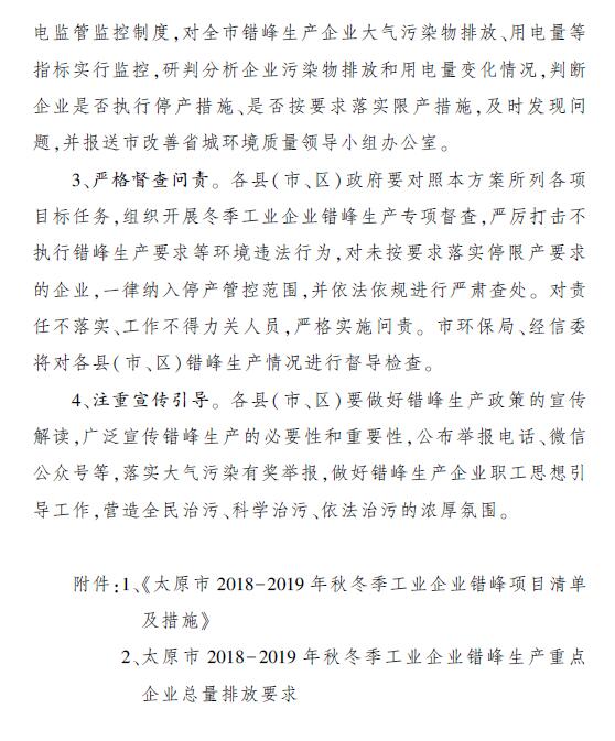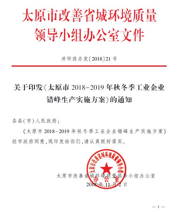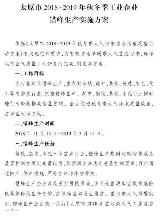 太原市2018-2019年秋冬季工業(yè)企業(yè)錯(cuò)峰生產(chǎn)實(shí)施方案