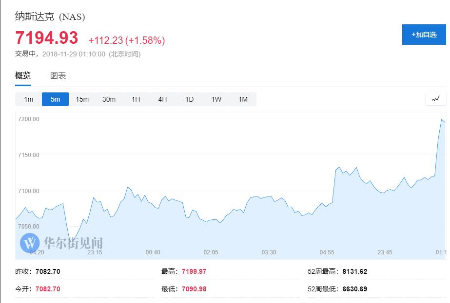 講話開始十分鐘內,納指漲幅超過100點 ,日內上漲1.46%。標普500指數漲1.4%。