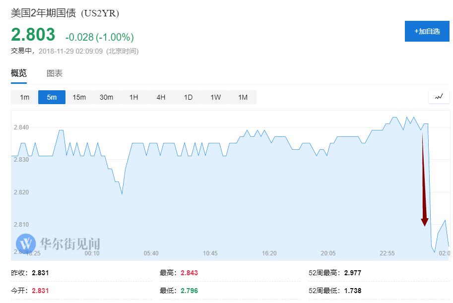 講話后,10年期美國國債收益率急速轉跌,一度跌破3.05%刷新日低。對利率預期更為敏感的2年期美債收益率一度跌至2.79%,日內稍早曾達到2.85%。